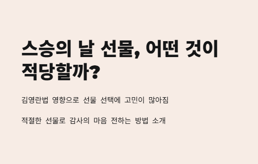 스승의 날은 감사의 마음을 전하는 특별한 날입니다. 하지만, 최근 김영란법의 영향으로 많은 사람들이 어떤 선물을 해야 할지 고민하고 있습니다. 특히 스승의 날 선물에 대한 법적 규제와 사회적 인식이 바뀌면서, 적절한 선물 선택에 신경을 써야 할 시점이 왔습니다. 이 글에서는 40대 여성 블로거로서, 김영란법에 맞는 스승의 날 선물과 그에 대한 다양한 경험을 나누고자 합니다.