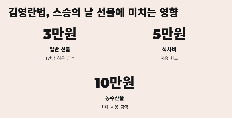 김영란법이 시행된 이후, 많은 사람들이 스승의 날 선물에 대한 고민을 하게 되었습니다. 이 법은 공직자에게 금품이나 선물을 제한하며, 교사도 공직자에 해당하므로 선물에 제한이 있습니다. 이 법에서는 "3·5·10 규칙"을 적용하며, 1인당 3만 원 이하의 선물은 가능하고, 농수산물은 최대 10만 원까지 허용됩니다.