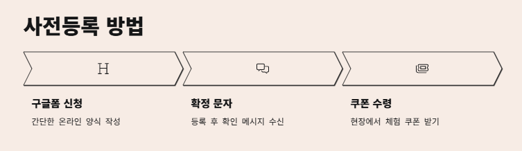 사전등록은 구글폼을 통해 간단히 신청할 수 있으며, 등록 후 문자로 확정 문자를 받게 됩니다. 등록자는 현장에서 쿠폰을 수령하여 다양한 체험을 즐길 수 있습니다.