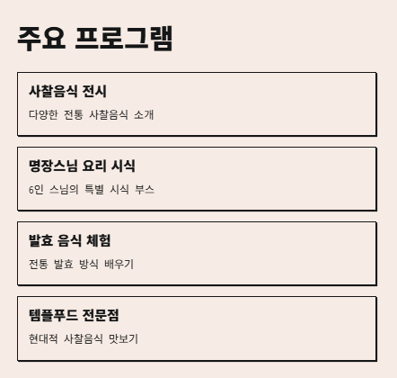 사찰음식 대축제의 주요 프로그램