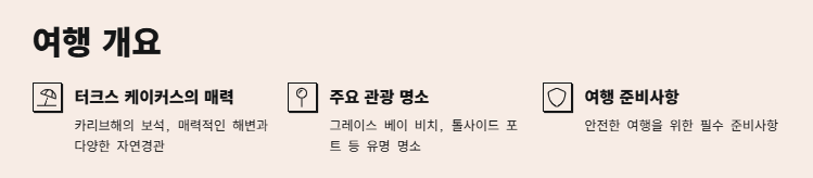"터크스 케이커스 제도는 그레이스 베이 비치, 찰크 사운드, 톨사이드 포트 등 유명한 관광 명소로 유명합니다."