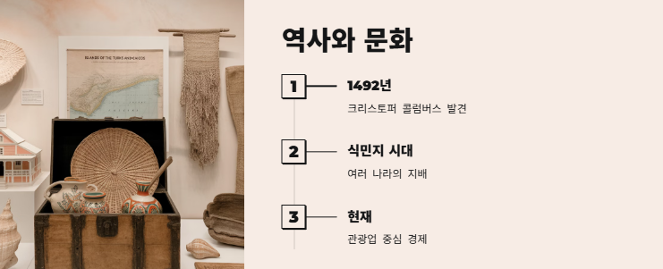 터크스 케이커스 제도는 크리스토퍼 콜럼버스가 1492년에 발견한 이후 여러 나라의 지배를 받으며 발전해 왔습니다. 지금은 관광업을 중심으로 경제가 운영되고 있으며, 섬 주민들의 대부분은 관광업에 종사하고 있습니다. 그들의 삶과 문화는 여행객에게도 많은 영감을 주며, 여행 중 다양한 지역 전통과 문화를 체험할 수 있는 기회가 제공됩니다.