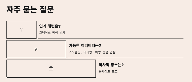 - 스노클링, 다이빙, 해양 생물 관찰 등 다양한 해양 활동을 즐길 수 있습니다.