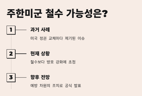 솔직히 말해서 ‘주한미군 철수’ 얘기는 이번이 처음은 아니야. 미국 정권 바뀔 때마다 나오는 얘기기도 하고, 예전에도 트럼프 대통령이 그런 말 했던 적 있었잖아.