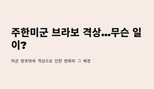안녕! 오늘은 진짜 좀 심각하면서도 중요한 얘기 가져왔어. 뉴스 보고 좀 놀란 친구들도 있을 거 같은데, 바로 주한미군 브라보 격상 소식이야. 평소엔 그런 뉴스 잘 안 보는 나도 이번엔 완전 집중해서 봤어. 왜냐면… 이게 우리 일상에도 영향 줄 수 있는 문제라서!
