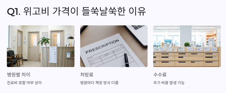 Q1. 위고비 가격이 왜 이렇게 들쑥날쑥하죠?