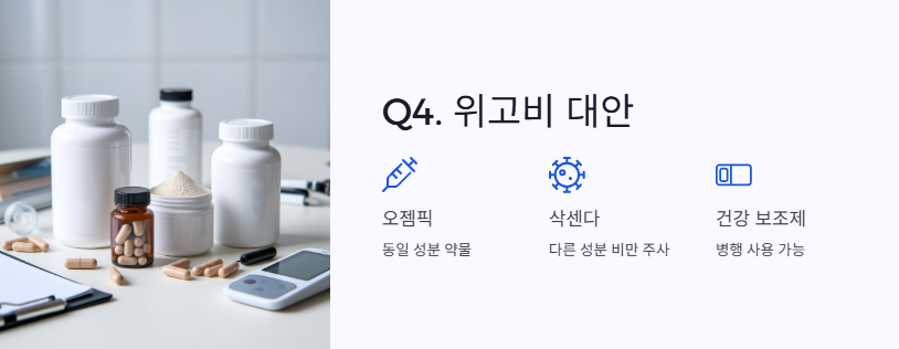 동일 성분인 오젬픽이나 삭센다, 또는 건강 보조제를 병행하는 방법도 고려됩니다.