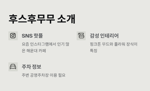 해운대에 위치한 감성카페 '후스후무무'는 요즘 SNS에서 핫한 공간 중 하나로 꼽혀요. 실제 방문 후기를 통해 인테리어, 메뉴, 주차 편의성까지 솔직하게 정리해봤어요.