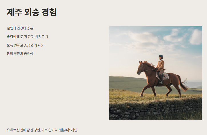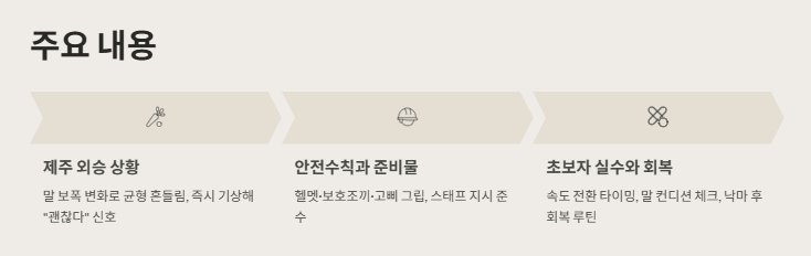 속도 전환 타이밍, 말 컨디션 체크, 첫 낙마 후 멘탈·체력 회복 루틴을 공유.